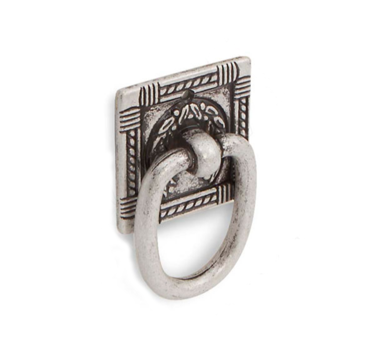 Ручка кольцо на накладке WBH.5038.000.00E8, материал Замак, отделка Серебро, 54*34*11 мм